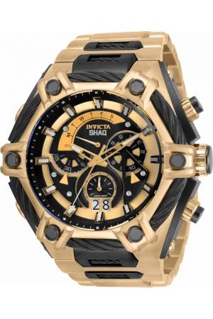 Band For Invicta SHAQ 33681, Band Material Cable, Stainless Steel, Band Color Black, Gold, Band Width 33.5 mm, Band Length 190 mm, Buckle Type Fold over safety, Clasp Type