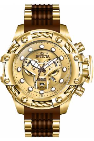 Band For Invicta SHAQ 37027, Band Material Silicone, Stainless Steel, Band Color Brown, Gold, Band Width 26 mm, Band Length 190 mm, Buckle Type Buckle, Clasp Type