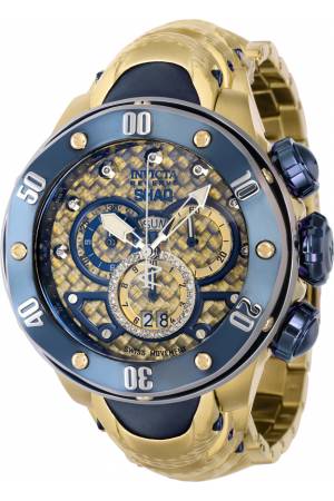 Band For Invicta SHAQ 37747, Band Material Silicone, Stainless Steel, Band Color Dark Blue, Gold, Band Width 30.4 mm, Band Length 210 mm, Buckle Type Fold over safety, Clasp Type Deployment, Safety