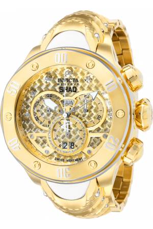 Band For Invicta SHAQ 37752, Band Material Silicone, Stainless Steel, Band Color White, Gold, Band Width 30.4 mm, Band Length 210 mm, Buckle Type Fold over safety, Clasp Type Deployment, Safety