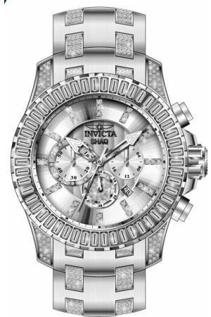 Band For Invicta SHAQ 43823, Band Material Crystal, Stainless Steel, Band Color Steel, Band Width 26 mm, Band Length 196 mm, Buckle Type Fold over safety, Clasp Type