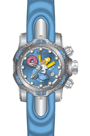 Band For Invicta Simpsons 39022, Band Material Silicone, Stainless Steel, Band Color Light Blue, Steel, Band Width 26 mm, Band Length 210 mm, Buckle Type Buckle, Clasp Type