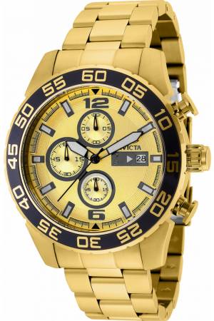 Band For Invicta Specialty 1016, Band Material Stainless Steel, Band Color Gold, Band Width 22 mm, Band Length 218 mm, Buckle Type Fold over safety, Clasp Type Safety