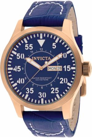 Band For Invicta Specialty 11197, Band Material Leather, Band Color Blue, Band Width 24 mm, Band Length 235 mm, Buckle Type Buckle, Clasp Type Regular