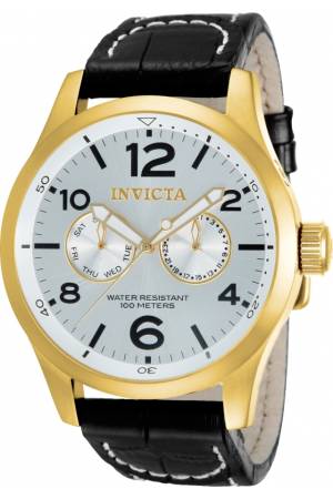 Band For Invicta Specialty 12172, Band Material Leather, Band Color Black, Band Width 24 mm, Band Length 235 mm, Buckle Type Buckle, Clasp Type Regular