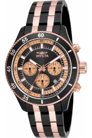 Band For Invicta Specialty 18057, Band Material Stainless Steel, Band Color Rose Gold, Black, Band Width 22 mm, Band Length 225 mm, Buckle Type Fold over safety, Clasp Type Safety