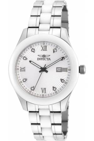 Band For Invicta Specialty 18152, Band Material Stainless Steel, Ceramic, Band Color Steel, White, Band Width 20 mm, Band Length 185 mm, Buckle Type Butterfly, Clasp Type Butterfly