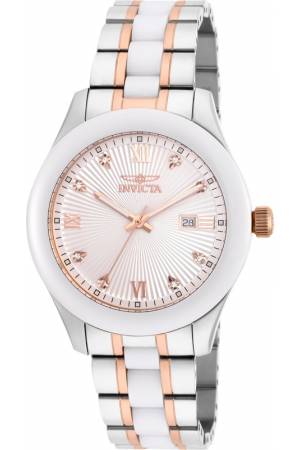 Band For Invicta Specialty 18157, Band Material Stainless Steel, Ceramic, Band Color Steel, Rose Gold, White, Band Width 20 mm, Band Length 185 mm, Buckle Type Butterfly, Clasp Type Butterfly