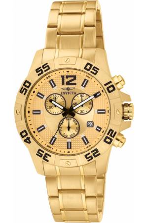Band For Invicta Specialty 1980, Band Material Stainless Steel, Band Color Gold, Band Width 22 mm, Band Length 235 mm, Buckle Type Fold over safety, Clasp Type Safety