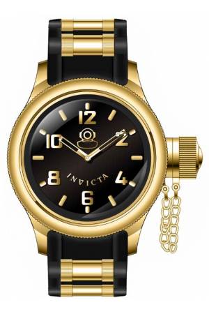 Band For Invicta Specialty 37047, Band Material Silicone, Stainless Steel, Band Color Black, Gold, Band Width 26 mm, Band Length 235 mm, Buckle Type Buckle, Clasp Type Regular