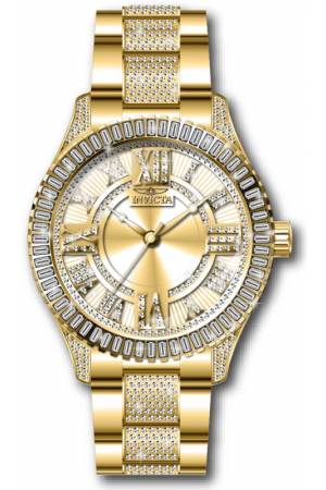 Band For Invicta Specialty 44190, Band Material Crystal, Stainless Steel, Band Color Gold, Band Width 22 mm, Band Length 195 mm, Buckle Type Fold over safety, Clasp Type