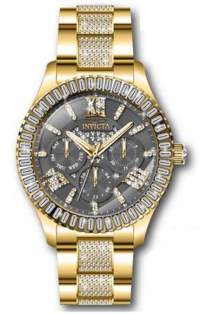 Band For Invicta Specialty 44242, Band Material Crystal, Stainless Steel, Band Color Gold, Steel, Band Width 18 mm, Band Length 185 mm, Buckle Type Fold over push button, Clasp Type 0,