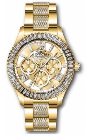 Band For Invicta Specialty 44243, Band Material Crystal, Stainless Steel, Band Color Gold, Band Width 18 mm, Band Length 185 mm, Buckle Type Fold over push button, Clasp Type 0,