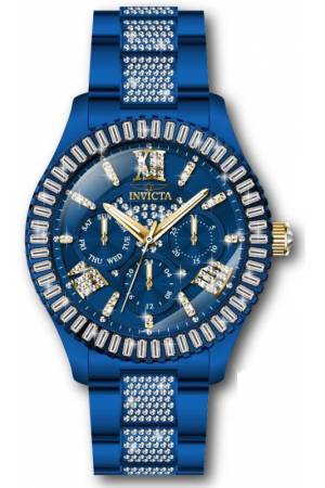 Band For Invicta Specialty 44245, Band Material Crystal, Stainless Steel, Band Color Blue, Band Width 18 mm, Band Length 185 mm, Buckle Type Fold over push button, Clasp Type 0,