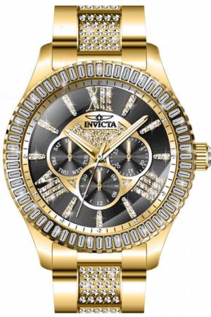 Band For Invicta Specialty 44247, Band Material Crystal, Stainless Steel, Band Color Gold, Band Width 22 mm, Band Length 185 mm, Buckle Type Fold over push button, Clasp Type