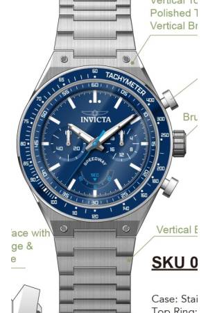 Band For Invicta Speedway 49377, Band Material Stainless Steel, Band Color Steel, Band Width 22 mm, Band Length 205 mm, Buckle Type Fold over safety, Clasp Type Safety, 0