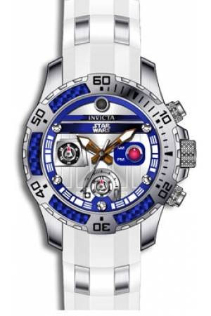 Band For Invicta Star Wars 26186, Band Material Silicone, Stainless Steel, Band Color Steel, White, Band Width 18 mm, Band Length 185 mm, Buckle Type Regular, Clasp Type Regular