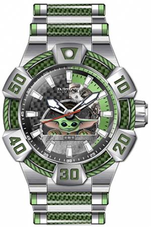 Band For Invicta Star Wars 40607, Band Material Glass Fiber, Stainless Steel, Band Color Green, Steel, Band Width 32 mm, Band Length 190 mm, Buckle Type Fold over safety, Clasp Type
