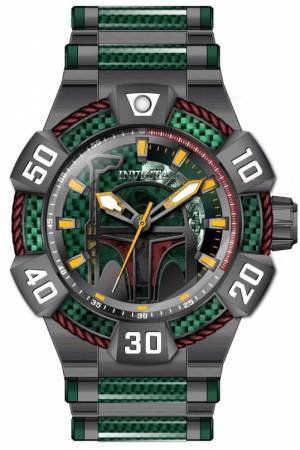 Band For Invicta Star Wars 40608, Band Material Glass Fiber, Stainless Steel, Band Color Green, Gunmetal, Band Width 32 mm, Band Length 190 mm, Buckle Type Fold over safety, Clasp Type