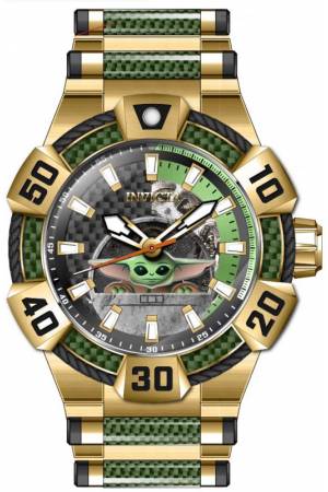 Band For Invicta Star Wars 40976, Band Material Glass Fiber, Stainless Steel, Band Color Green, Gunmetal, Gold, Band Width 32 mm, Band Length 190 mm, Buckle Type Fold over safety, Clasp Type