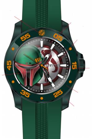 Band For Invicta Star Wars 43064, Band Material Silicone, Band Color Green, Band Width 26 mm, Band Length 210 mm, Buckle Type Buckle, Clasp Type 0,