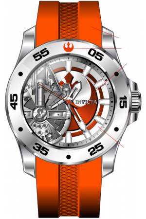 Band For Invicta Star Wars 43071, Band Material Silicone, Band Color Orange, Band Width 26 mm, Band Length 210 mm, Buckle Type Buckle, Clasp Type