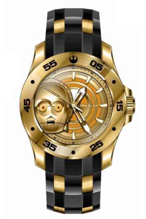 Band For Invicta Star Wars 44457, Band Material Silicone, Stainless Steel, Band Color Black, Gold, Band Width 20 mm, Band Length 190 mm, Buckle Type Buckle, Clasp Type