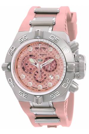 Band For Invicta Subaqua 1391, Band Material Stainless Steel, Artificial Rubber, Band Color Steel, Pink, Band Width 32.5 mm, Band Length 220 mm, Buckle Type Buckle, Clasp Type Regular