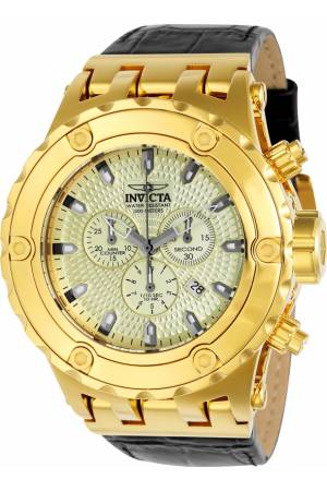 Band For Invicta Subaqua 24089, Band Material Stainless Steel, Leather, Band Color Gold, Black, Band Width 31 mm, Band Length 210 mm, Buckle Type Buckle, Clasp Type Regular