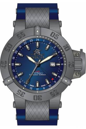 Band For Invicta Subaqua 80431, Band Material Stainless Steel, Polyurethane, Band Color Gunmetal, Blue, Band Width 29 mm, Band Length 200 mm, Buckle Type Fold over safety, Clasp Type Buckle, Foldover