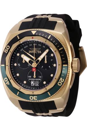 Band For Invicta SWISS MADE 44825, Band Material Silicone, Stainless Steel, Band Color Black, Gold, Band Width 33 mm, Band Length 210 mm, Buckle Type Buckle, Clasp Type