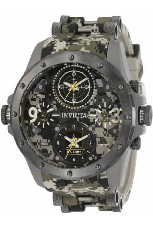 Band For Invicta U.S. Army 31967, Band Material Silicone, Stainless Steel, Band Color Camouflage, Dark Grey, Dark Green, Gunmetal, Band Width 26 mm, Band Length 210 mm, Buckle Type Buckle, Clasp Type Regular
