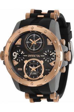 Band For Invicta U.S. Army 31969, Band Material Silicone, Stainless Steel, Band Color Black, Rose Gold, Band Width 26 mm, Band Length 210 mm, Buckle Type Buckle, Clasp Type Regular