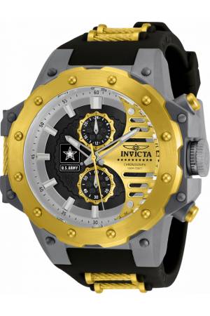 Band For Invicta U.S. Army 32984, Band Material Cable, Silicone, Band Color Black, Gold, Band Width 30 mm, Band Length 210 mm, Buckle Type Buckle, Clasp Type